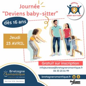 Mais s’occuper de bébés et de jeunes enfants, ça ne s’improvise pas. Pour t’aider à te lancer en toute confiance, le Service Info Jeunes (SIJ) t’accompagne avec une journée spéciale « Deviens baby-sitter » le jeudi 23 avril à Tinténiac !